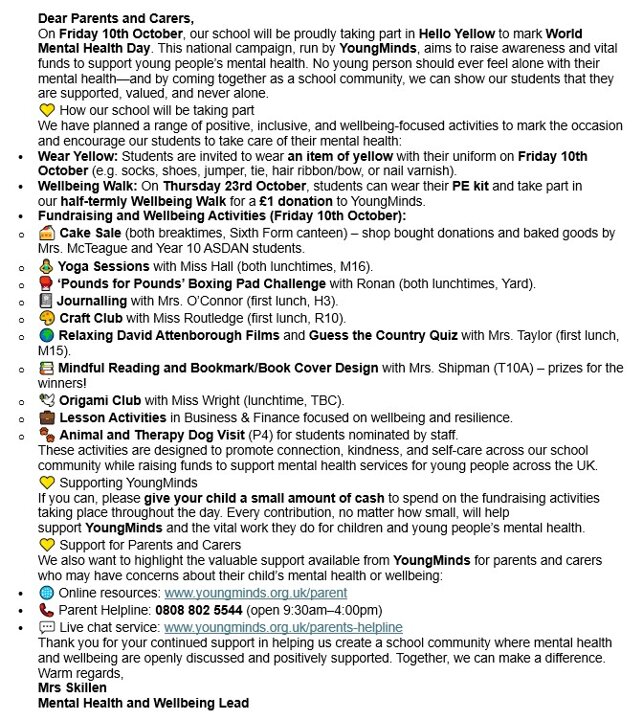 Mental Health and Wellbeing